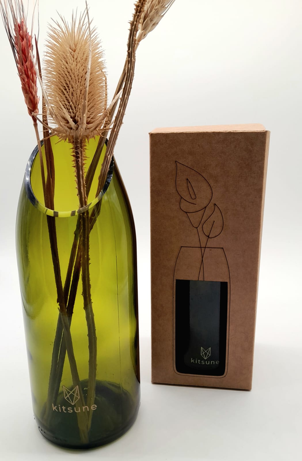 Descubrí el Florero Kitsune, una pieza única elaborada a partir de botellas recicladas de vidrio, que no solo aporta un toque de distinción a cualquier ambiente, sino que también refleja un compromiso real con el cuidado del planeta.